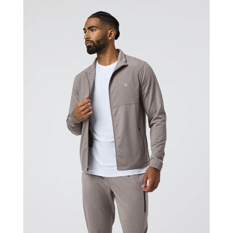 This track jacket is constructed with a blend of mostly recycled stretch knit and woven overlay, making it easy to style. Whether you're headed to practice, pairing it with jeans, or matching it with your essential Vuori bottoms, this versatile jacket is a must-have in any wardrobe.